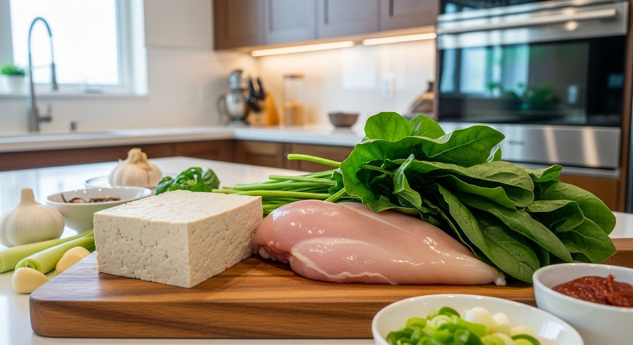 저지방 단백질 재료인 두부, 닭고기, 돼지 등심을 주재료로 활용하면 근육 유지에 필요한 단백질을 충분히 섭취할 수 있습니다.